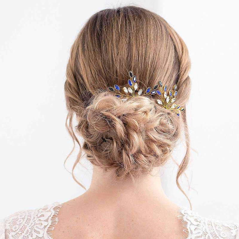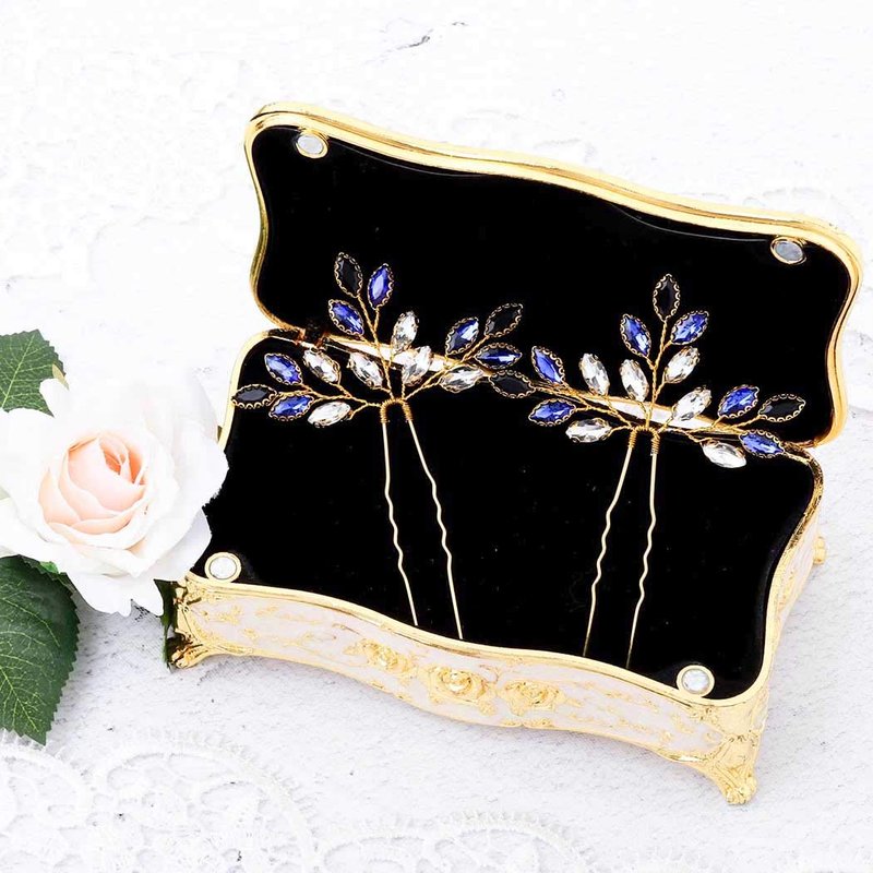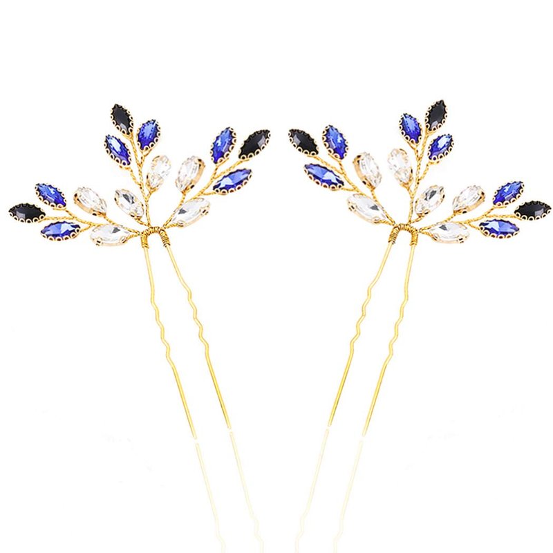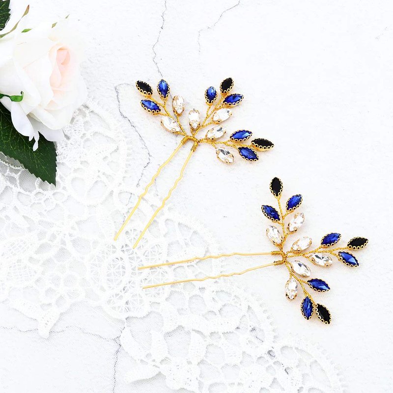 - Crystal Leaves bridal hair pin,Blue, Gold and Silver color for choose.