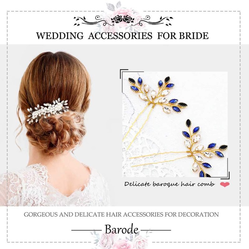Barode Bride Wedding Hair Pins Blue Crystal Bridal Headpieces Hair Accessories for Women and Girls Pack of 2 (Blue)