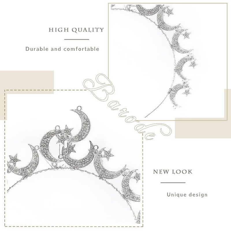 Barode Moon Crown Headband Silver Star Bride Tiaras Bridal Wedding Headpiece Princess Angel Prom Birthday Party Hair Accessories for Women