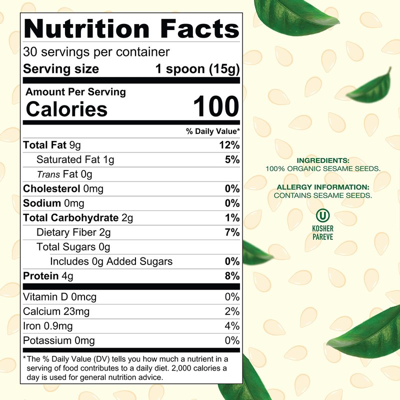 Baron's usda organic tahini pure sesame paste | rich & creamy for hummus, baba ghanoush & dressings | kosher, vegan, unsalted ground seeds | gluten- & peanut-free, keto-friendly (1 Pound (Pack of 2))