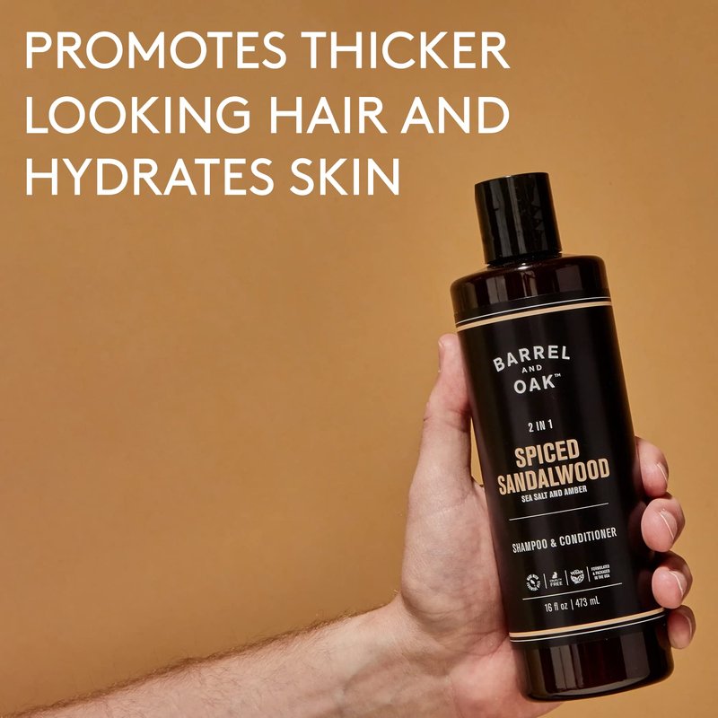 - GREAT SCENT THAT LASTS ALL DAY: Our all-in-one body wash comes in Barrel and Oak's signature scent, Spiced Sandalwood. An outdoorsy aroma of rich amber, sea salt, & sandalwood. Its robust, natural scent lasts all day.