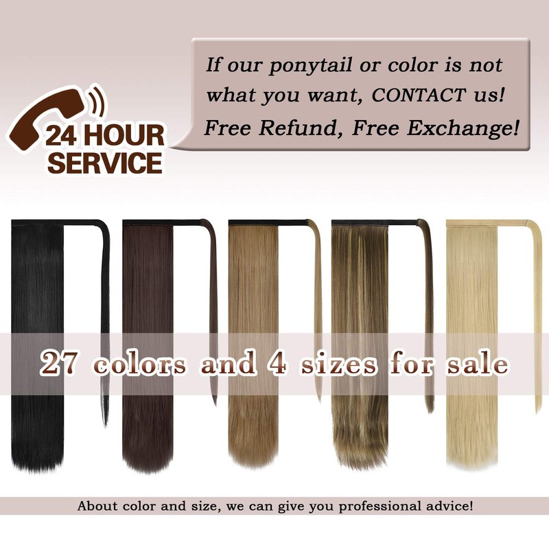 - ➤Straight wrap around ponytail hair extension. Length: 26 inch; Weight: 4.23 oz. Add the length, volume and fullness to a ponytail or a bun just in seconds. Smooth and less tangled, not heavy.