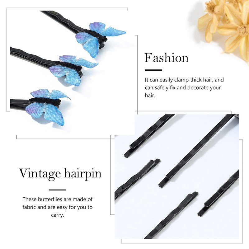 - Blue butterfly hair pins suitable for short, long, thin and curly hairstyle.