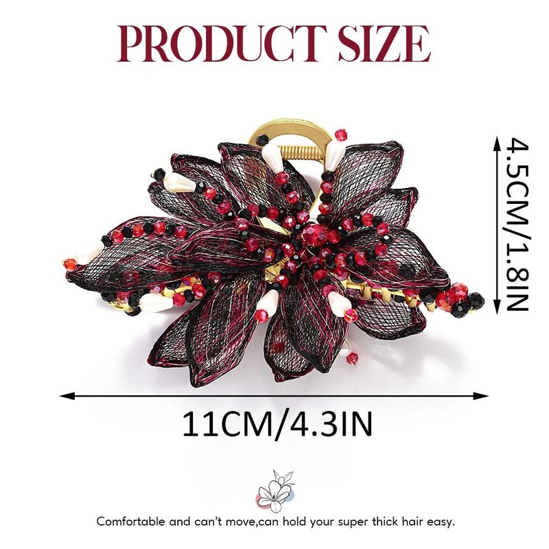 - Crystal beaded hair claw barrettes are Length 11.3CM/4.4IN, height 4.5CM/1.8IN, suitable for short, long, thin and curly hairstyle.