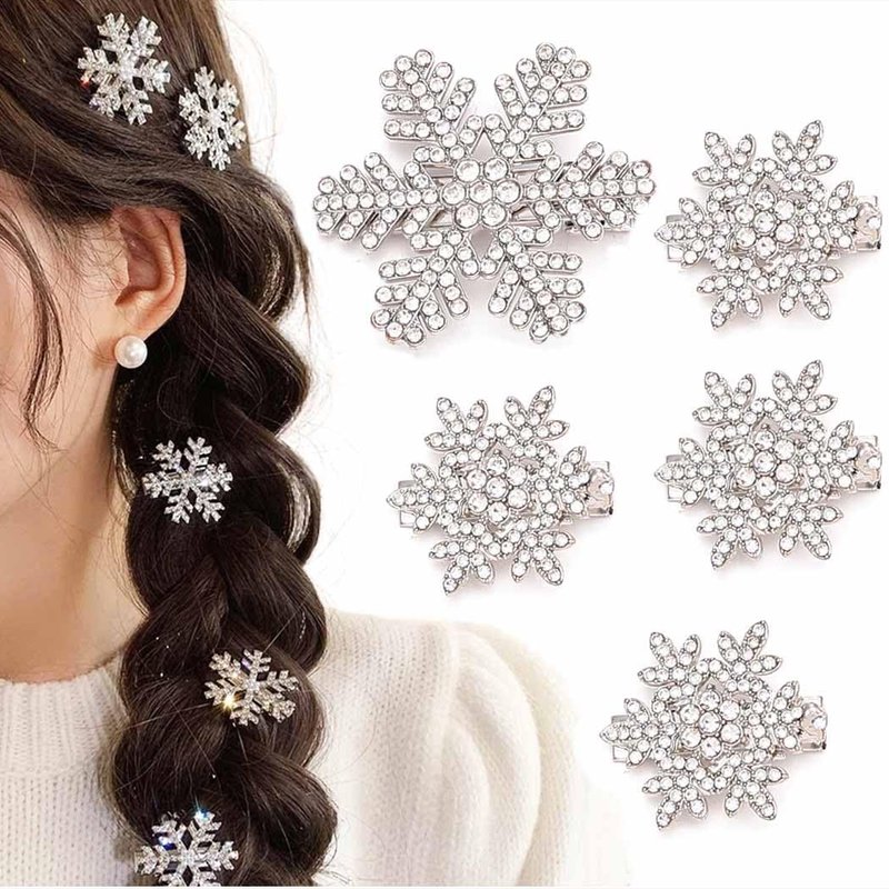 - Snowflake hair clips for women are delicate and 5 pack silver crystal snowflake hairpins for women and girls.