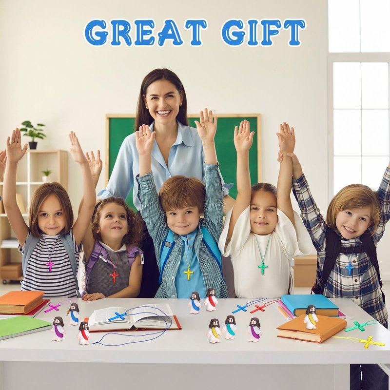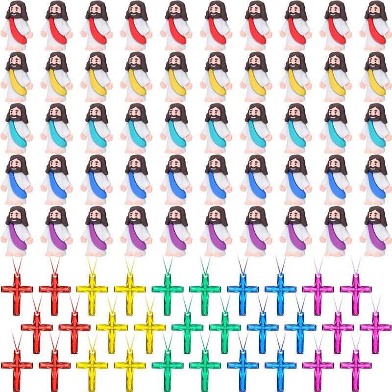 - Generous Package: each package includes 50 mini Jesus figurine and 50 plastic cross necklaces for kids, each color has 10 pieces, facilitating lots of fun and joy for children during the party or Sunday School activities; The generous quantity makes these figurines and necklaces a good choice for larger gatherings or events