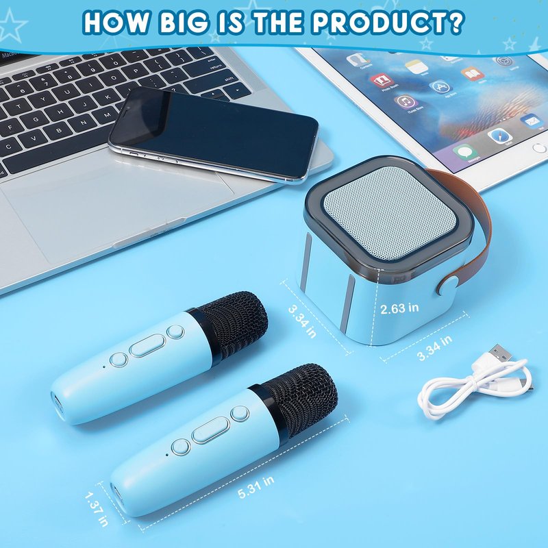 - Small and easy: This children's karaoke machine measures 3.46×3.46×2.48 inches, which is small and easy to carry and easy to operate. In addition to home, you can also use it for parties, travel and other daily life