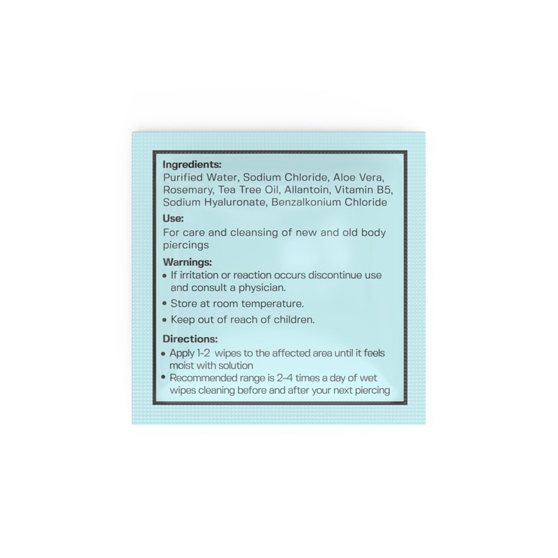 - 🌊75 INDIVIDUALLY WRAPPED PIERCING AFTERCARE WIPES - Each pack features 75 individual wipes which have been pre-moistened with our powerful saline solution for piercings, nose and ear piercing cleaning solution. Perfect for Travel size and on-the-go piercing aftercare. The no-fuss formulation is packed with powerful skin-healing minerals, including Sea Salt, an all natural sanitizer, Rosemary, Aloe Vera and Water. Wipe dimensions: 8 x 8 cm. Alternative to a Piercing Aftercare Spray.