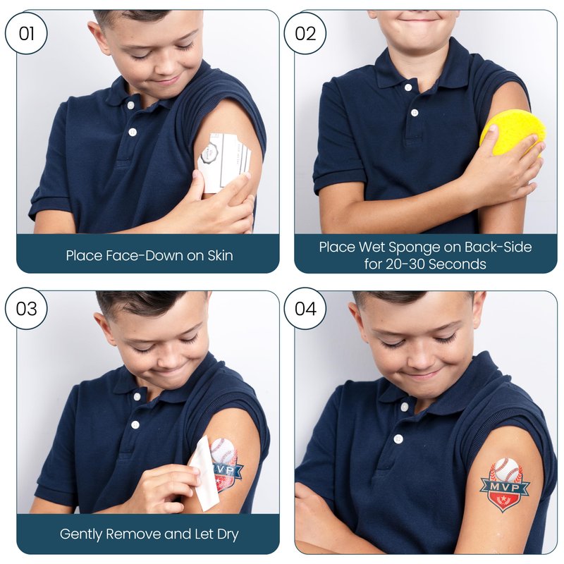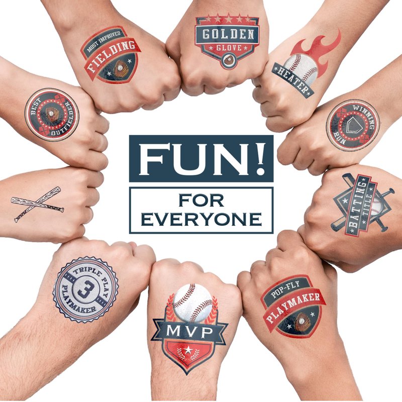 - Commemorate Moments On and Off the Field - The fun doesn’t stop on the field! Our baseball tattoos are long-lasting, so you can celebrate success even after you leave the field. They’re the perfect conversation starter for adults and child alike.