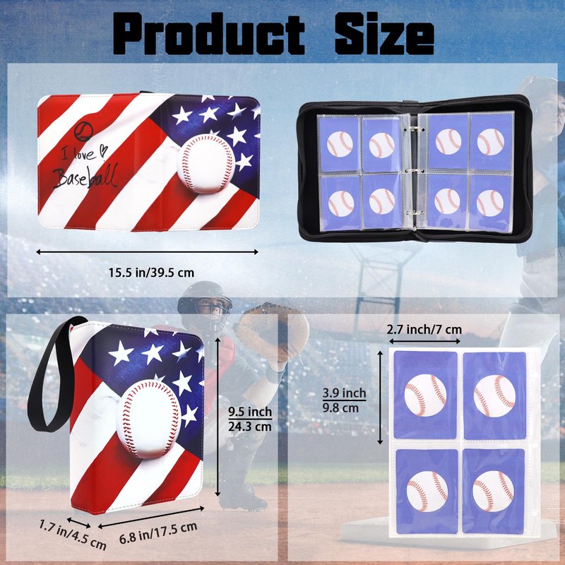 Large Capacity -- This American Flag Baseball card binder has 50 removable sleeves, 4 pockets on each sides of one sleeve, 400 pockets in all. Each pocket sized in, suitable for standard-size trading cards.