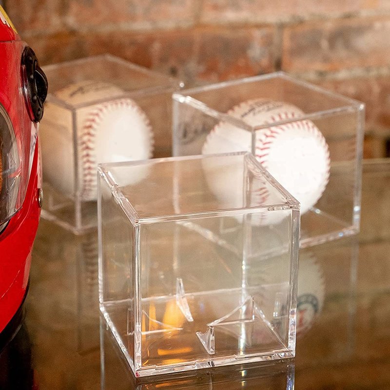 - 【Game Ball Display Case -Build in Stand 】-Our Clear acrylic display case has a built-in stand, which can be placed on the baseball steadily, perfectly display the baseball and prevent the baseball from shaking. NOT only a Baseball holders, memorabilia cube for balls display,But also a good storage case.