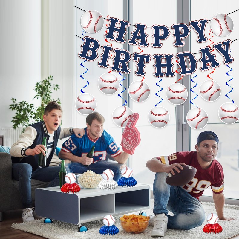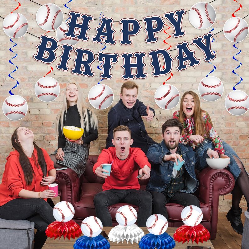Baseball Party Decorations, Baseball Birthday Party Decorations Includes Happy Birthday Banner Baseball Table Decorations and Hanging Swirls, Baseball Themed Party Decorations