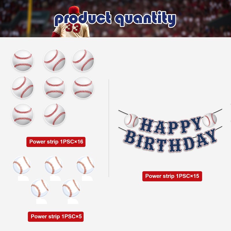 - 【Durable Material】:The baseball birthday party decorations are made of sturdy cardstock and metallic foil. The cardstock are double-sided, more durable. It's perfect for catering to the baseball themed birthday atmosphere