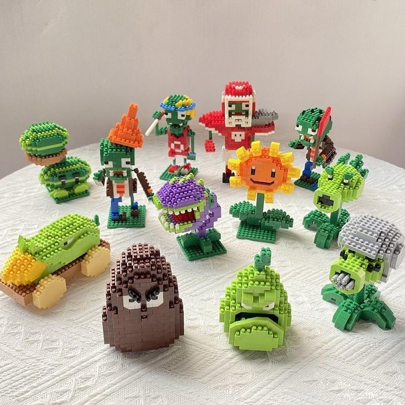 BASHERISE 1PCS Plant and Zombies Toys Action Figures Zombies PVZ Toys Set 1 2 Series Cherry Plant Plush Building Blocks Great Gift for Christmas, Birthday New