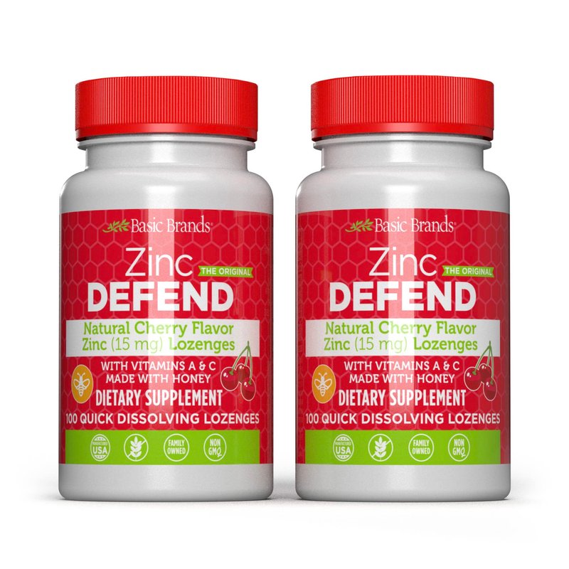 Basic Brands – Zinc Cherry Defend - 100 Lozenges - Natural Cherry Flavor Zinc–Lozenges - Immune Boost, Cold Relief, Non-GMO, Zinc Acetate & Vitamin C - 2-Pack
