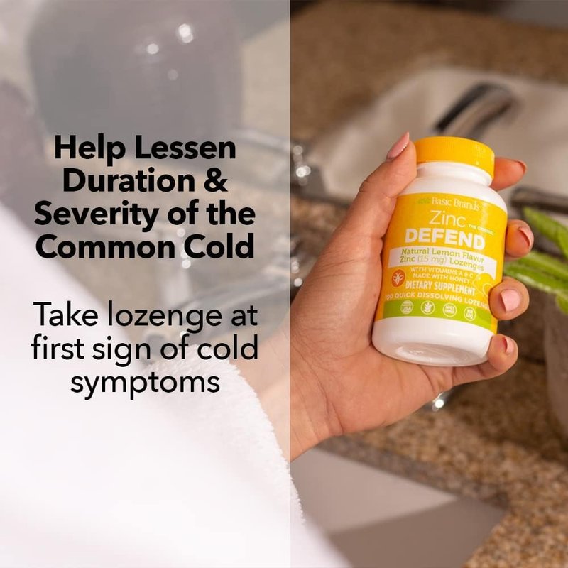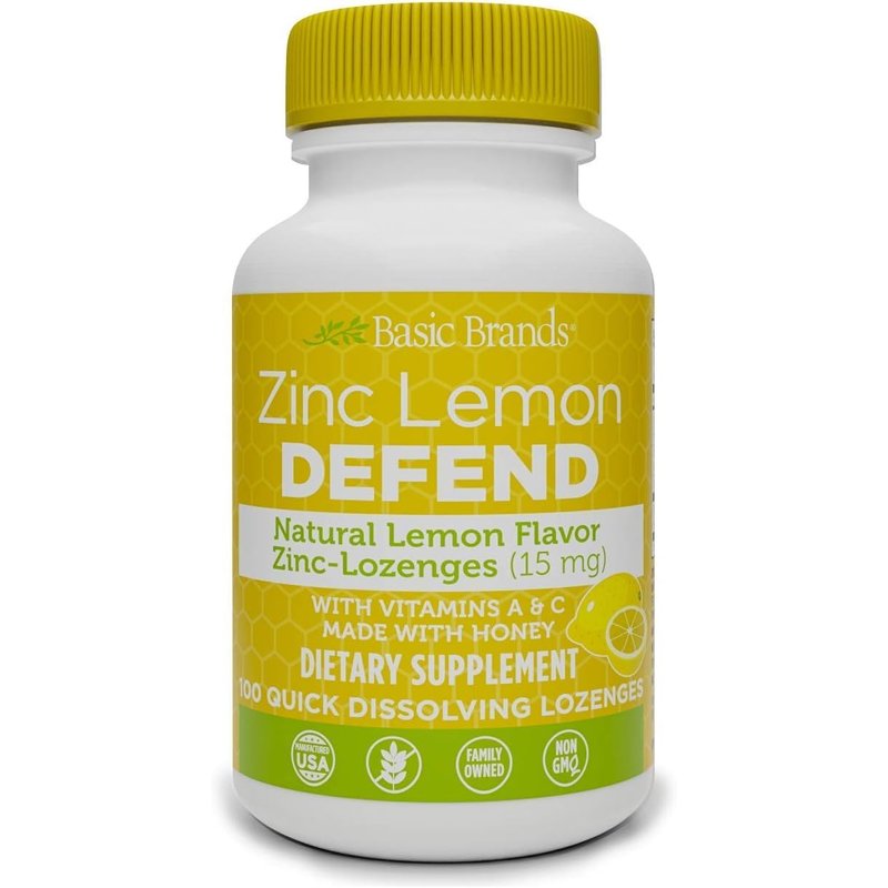 Basic Brands – Zinc Lemon Defend - 100 Lozenges - Natural Lemon Flavor Zinc–Lozenges - Immune Boost, Cold Relief, Non-GMO, Zinc Acetate & Vitamin C - 2-Pack