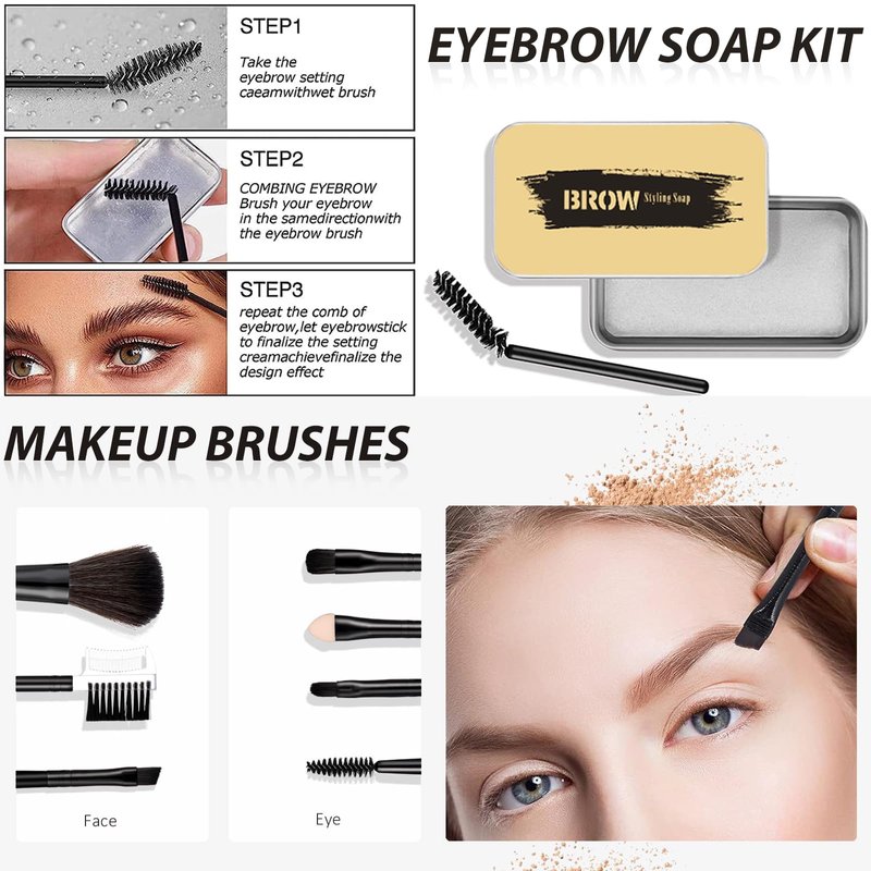 - ❤ What's in this Makeup Set? : 1 x 8 colors nature tone, all-in-one & multi-purpose eyeshadow palette (1 eyeshadow brush included), 1 x waterproof and smudge-shield mascara(keep curling, stay in place), 1 x waterproof and smooth liquid eyeliner(friendly to beginners), 1 x eyebrow soap(set brows all day), 1 x mesh cosmetic bag(transparent, portable and easy to find makeup stuff), 1x double-head lip gloss(daily shade), 1 x 7pcs Soft Makeup Brush Set(premium quality).