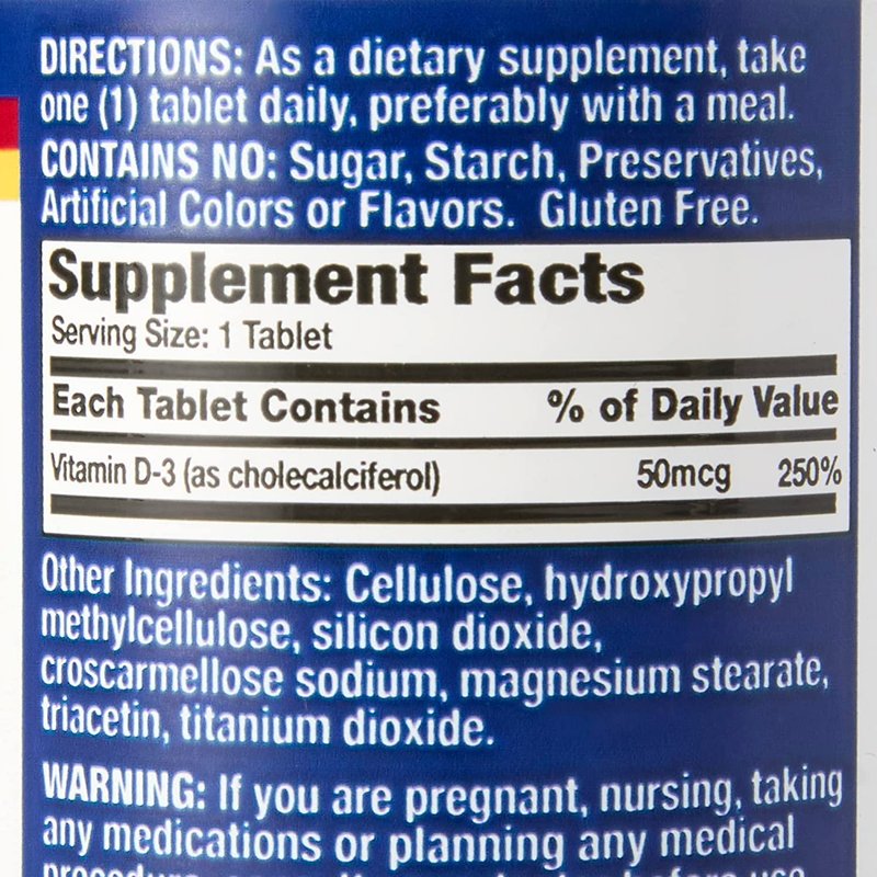 - The vitamin D 2,000 IU strength tablets help you get the right amount of vitamin D-3 daily requirements