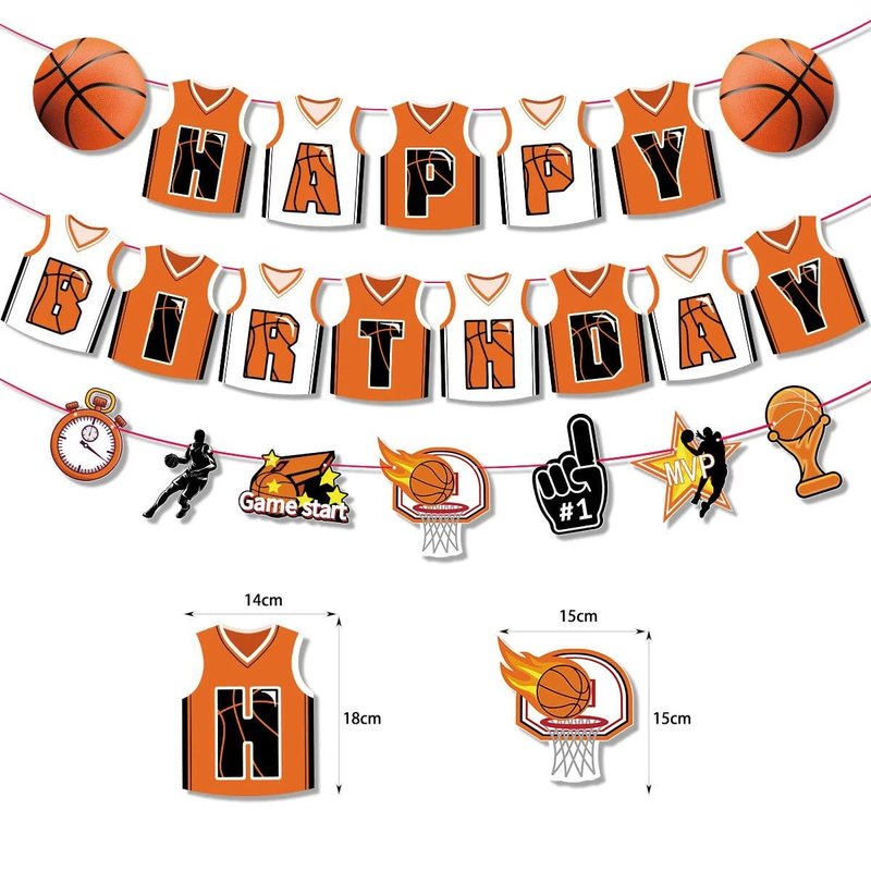 - 🏀Fantastic Quality: The happy birthday banner is printed on the jersey graphic card. The paper goods are easy to assemble, balloons are made of natural latex, ensures not easy to break. The cake toppers are made from safety card paper, non-toxic, and harmless.