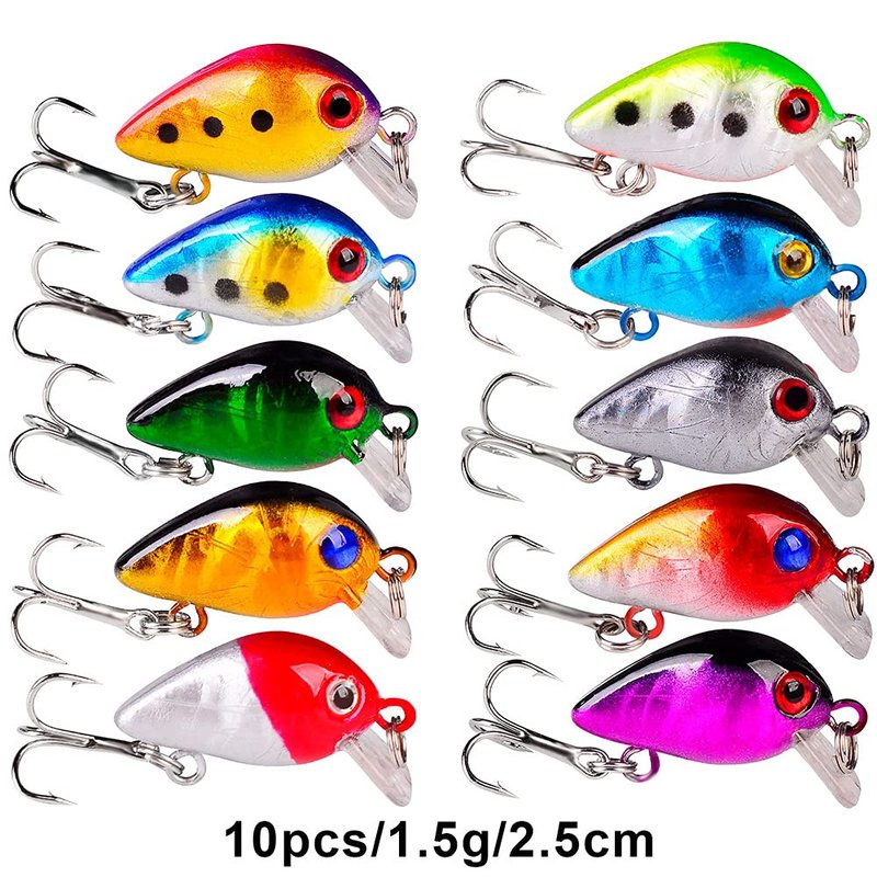 Baikalbass 56pcs Fishing Tackle Set With vibrant colors and patterns, the Minnow bass draws curious predators right in to the end of your line. Utilizing its lip and body design, this lure performs a tight wobble action that is certain to trigger explosive strikes. Specifications Total Quantity: Pack of 56pcs Hard Lures Set Details: Double Stronger Flat Rings Styles of Hooks: Sharp and High Penetration Hooks Features Minnow Lures 1-10pcs: Length: 10cm-3.94in Weight: 8.53g-0.3oz Hooks: 6# High Carbon Steel Treble Hooks Minnow Lures 2-5pcs: Length: 8.5cm-3.35in Weight: 8.4g-0.3oz Hooks: 6# High Carbon Steel Treble Hooks Minnow Lures 3-5pcs: Length: 8.5cm-3.35in Weight: 6.23g-0.22oz Hooks: 6# High Carbon Steel Treble Hooks Minnow Lures 4-6pcs: Length: 7.5cm-2.95in Weight: 4.69g-0.17oz Hooks: 6# High Carbon Steel Treble Hooks Minnow Lures 5-4pcs: Length: 7cm-2.76in Weight: 3.8g-0.13oz Hooks: 8# High Carbon Steel Treble Hooks Minnow Lures 6-8pcs: Length: 7cm-2.76in Weight: 7.78g-0.27oz Hooks: 6# High Carbon Steel Treble Hooks Crankbait 1-8pcs: Length: 5cm-1.97in Weight: 3.9g-0.14oz Hooks: 10# High Carbon Steel Treble Hooks Crankbait 2-10pcs: Length: 2.6cm-1.02in Weight: 1.9g-0.07oz Hooks: 10# High Carbon Steel Treble Hooks Package Information Pack of 56pcs Mixed Color and Size Fishing Lures Kits Note The Hook Is Extremely Sharp. Please Take Care For Handle It.