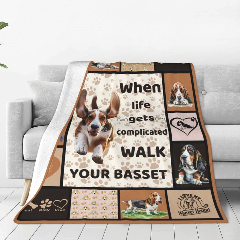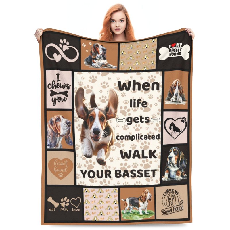 Basset Hound Dog Blanket Cute Basset Dog Decor Throw Blanket Super Warm Soft Plush Lightweight Fleece Flannel Animal Blanket Gifts for Girls Women Boys for Winter Couch Bedding 40"X50"