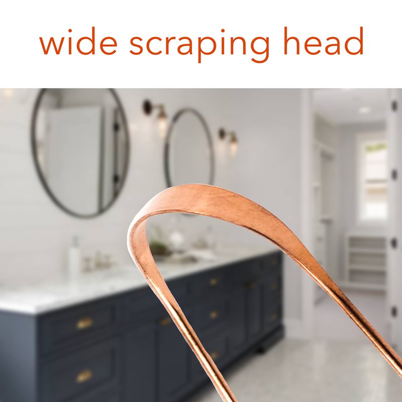 - ✔️ ERGONOMIC DESIGN: Built with strong copper, this scraper maintains its 'U' shaped curve and has been carefully designed to be flexible, but sturdy for long use. The flat smooth edge of the 'U' shape has an anti-gagging ridge for deep tongue cleaning
