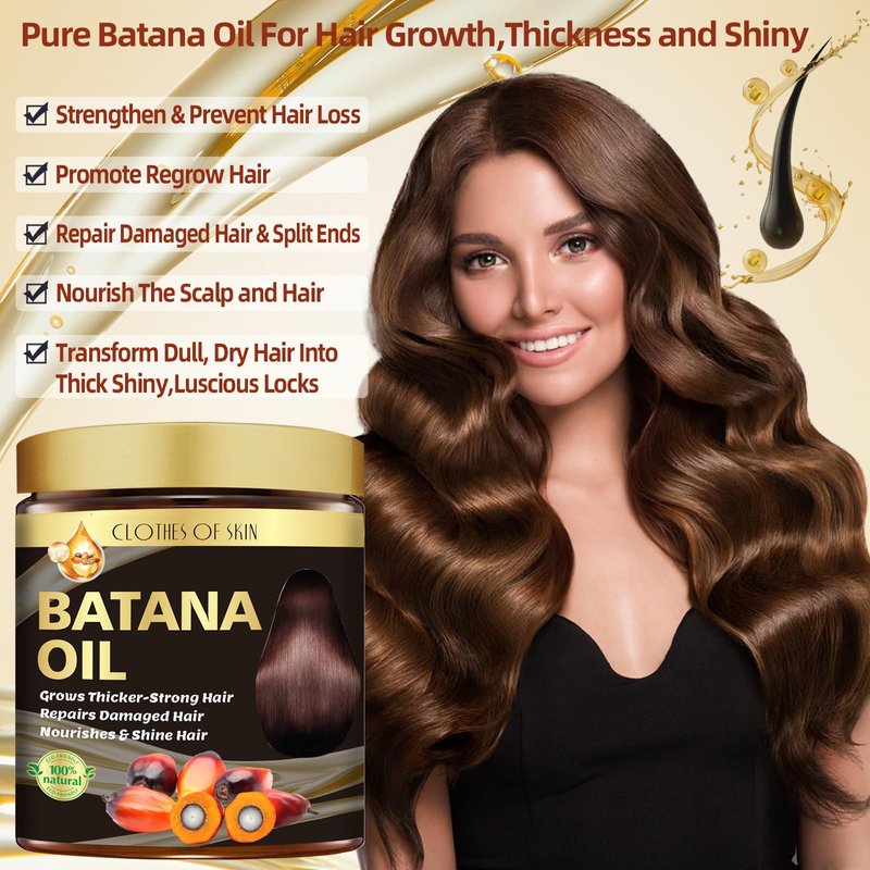 - 𝐑𝐞𝐩𝐚𝐢𝐫𝐬 𝐃𝐫𝐲 𝐃𝐚𝐦𝐚𝐠𝐞𝐝 𝐇𝐚𝐢𝐫: The nourishing components of Batana oil help repair damaged hair. It fills the fiber structure of the hair, reducing breakage and split ends, and repairing damage caused by heat styling, chemical treatments, or environmental factors. This makes the hair healthier, stronger, and easier to manage.