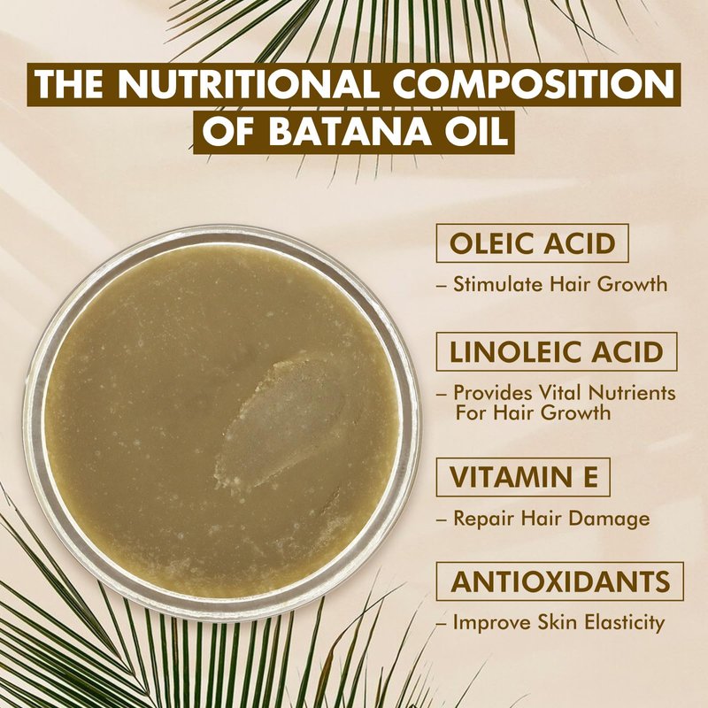 - Batana oil(or Palm Kernel Oil) is extracted from the Palm Kernel Nuts.It is a luxurious and nourishing oil that has been used for centuries for its hair and skin benefits. Batana oil is highly beneficial for hair due to its rich composition of essential fatty acids, antioxidants, and vitamin E. It deeply nourishes the hair, promotes strength and elasticity, repairs damage, and enhances overall hair health.