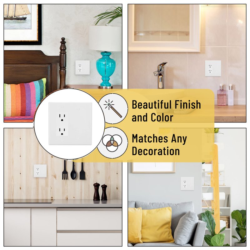 - These white wall plates can beautify your house and match your room better; their smooth, glossy finish and soft edges without recessed lines allow easy cleaning. The simple design makes these plates more elegant.