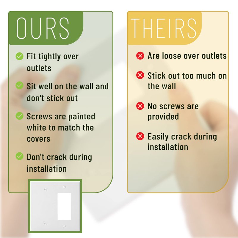 - Our wall plates are made to match any standard configuration and measure 4.9" x 4.8.". Plus, they're easy to install - simply screw them into place using the included hardware, and you're done!