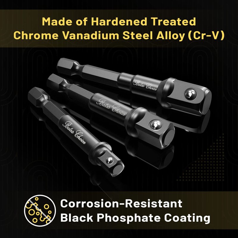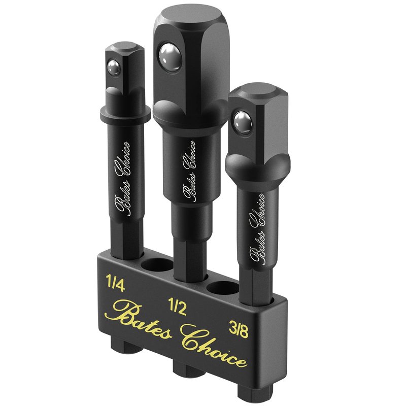 Bates- Impact Socket Adapter Set, 3 PCS, 1/4", 3/8" and 1/2", with Holder, Socket Adapter Set, Impact Socket Adapter, Socket Adapter Set, Socket Adapter for Drill, Impact Driver Socket Adapter