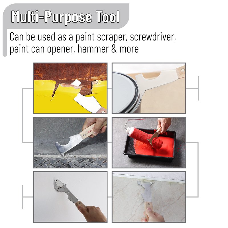 - ONE TOOL WITH MULTIPLE USES: Tools can be used as a paint scraper, screwdriver, paint can opener, hammer, crown molding remover, putty knife, box opener & more. One scraper blade replaces multiple hand tools in your toolbox.