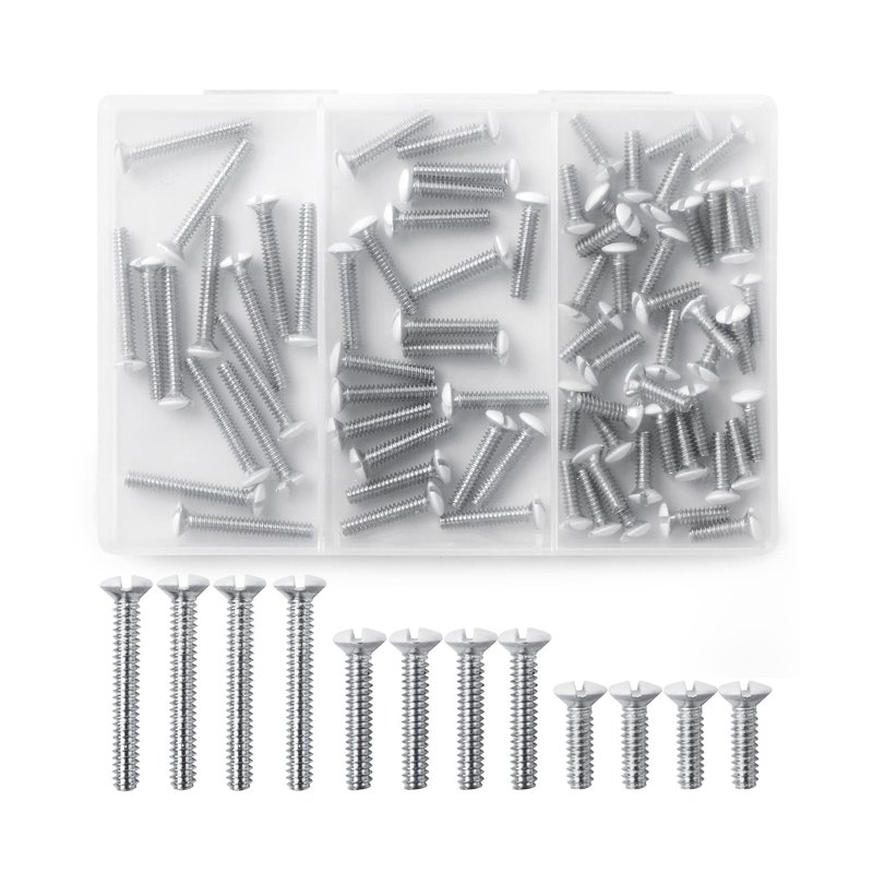 Includes: 75 Pieces Of White Wall Plate Screws In Assorted Sizes Featuring A Slotted Oval Head, Perfect For When You Need To Replace Decorative Screws Versatile Oval Head Light Switch Screws Compatible With Many Devices And Wall plates Wall Plate Screws White Painted Finish With Slotted Head Switch Plate Screws Ideal For DIY Home Repair Tool Kit, Electrician Screw For Handyman Tool Kit, And Construction Screws For Contractor Grade Supplies