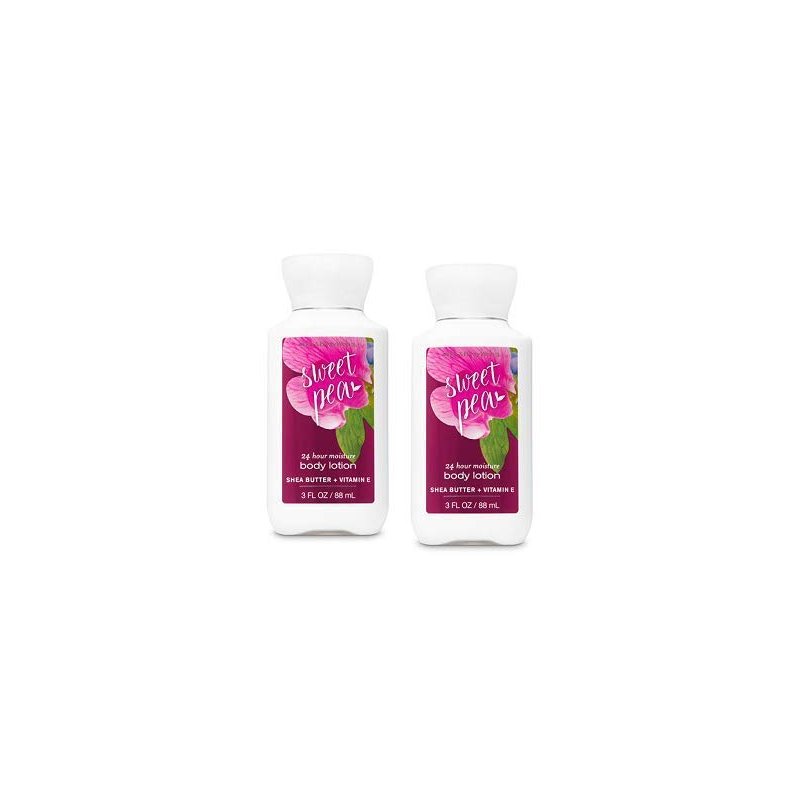 Bath and Body Works 2 Pack 24 Hour Moisture Sweet Pea Travel Size Body Lotion 3 Oz.