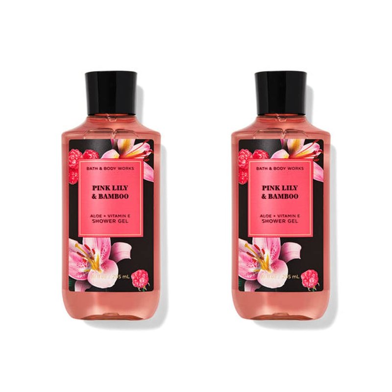 Bath and Body Works 2 Pack Pink Lily and Bamboo Shower Gel 10 Oz.