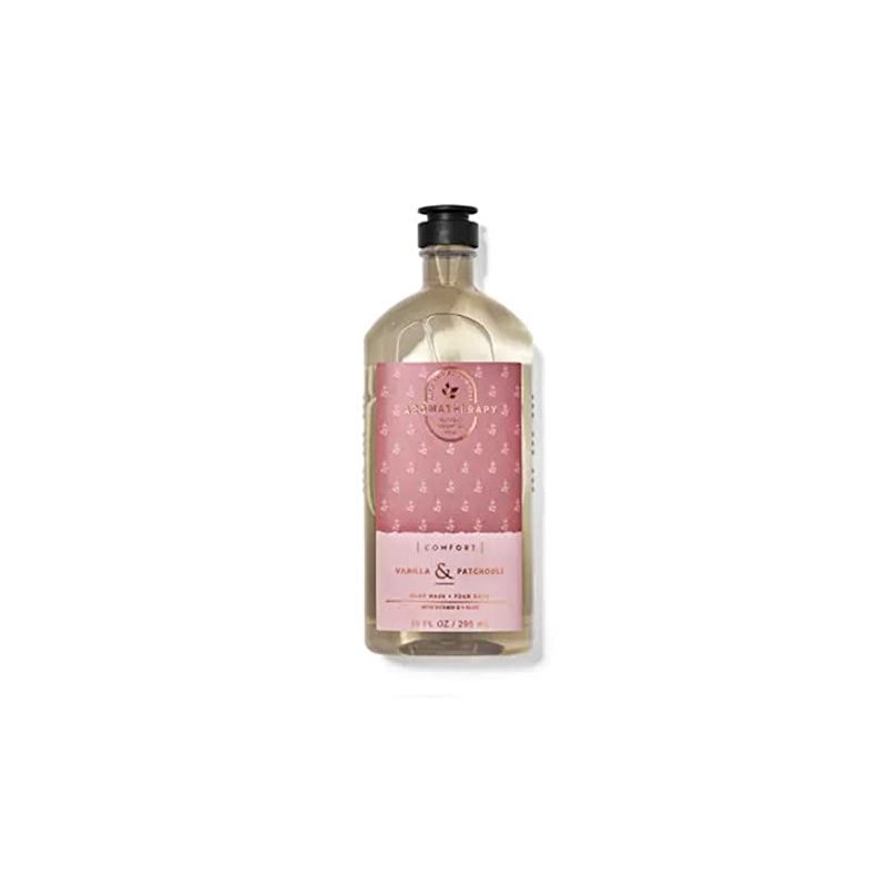 10 ounce bottle of Bath and Body Works Aromatherapy Comfort Vanilla Patchouli body wash and foam bath.