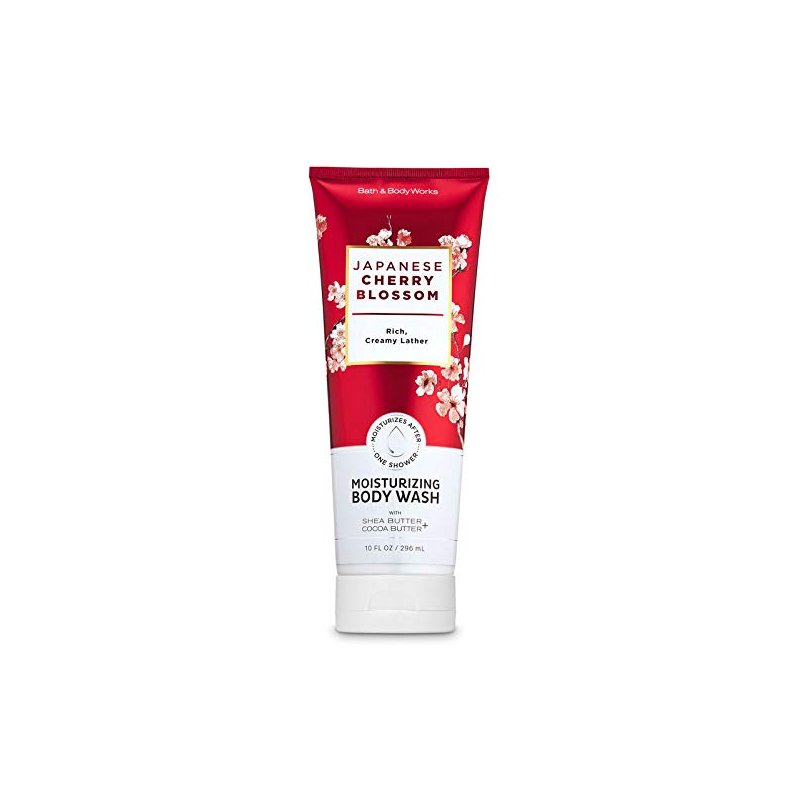 Bath & Body Works Japanese Cherry Blossom 10 Oz. Moisturizing Body Wash Tube. Made with shea butter and vitamin E. Fragrance notes: Japanese cherry blossom, Asian pear, fresh mimosa petals, white jasmine and blushing sandalwood. (Bottle artwork may vary as seasonally refreshed by manufacturer).