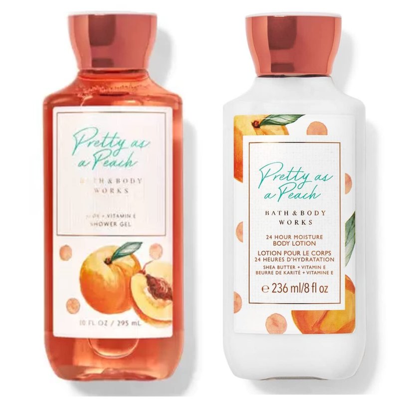 - Bath and Body Works Pretty as a Peach (2 Pack) Body Lotion 8 Oz. and Shower Gel 10 Oz. (Packaging may vary)