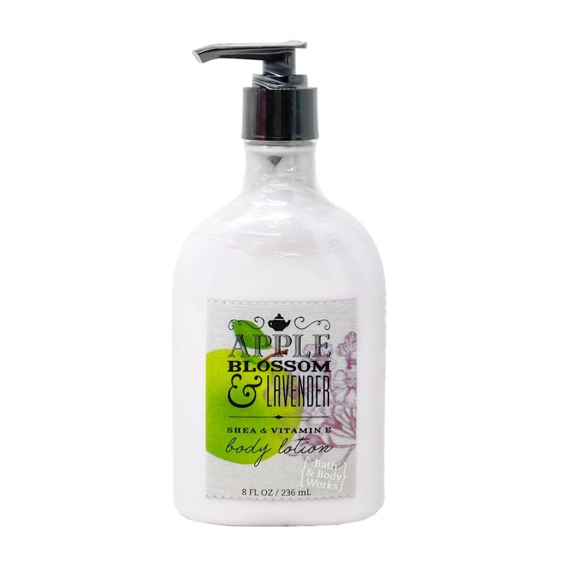 Bath and Body Works Signature Collection Apple Blossom & Lavender Duo Bundle. INCLUDES: 10 fl oz / 295 mL Shea + Vitamin E Shower Gel and a 8 fl oz / 236 mL Shea & Vitamin E Body Lotion. Fragrance Notes: A hand-picked bouquet of apple blossoms, fresh-cut lavender and jasmine petals, dotted with passionfruit and sparkling quince.