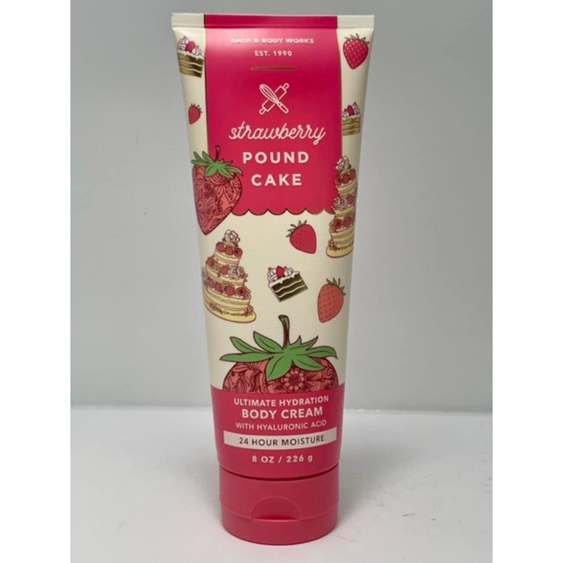 Bath and Body Works Strawberry Pound Cake Ultimate Hydration 24 Hour Body Cream 8 Ounce with Hyaluronic Acid