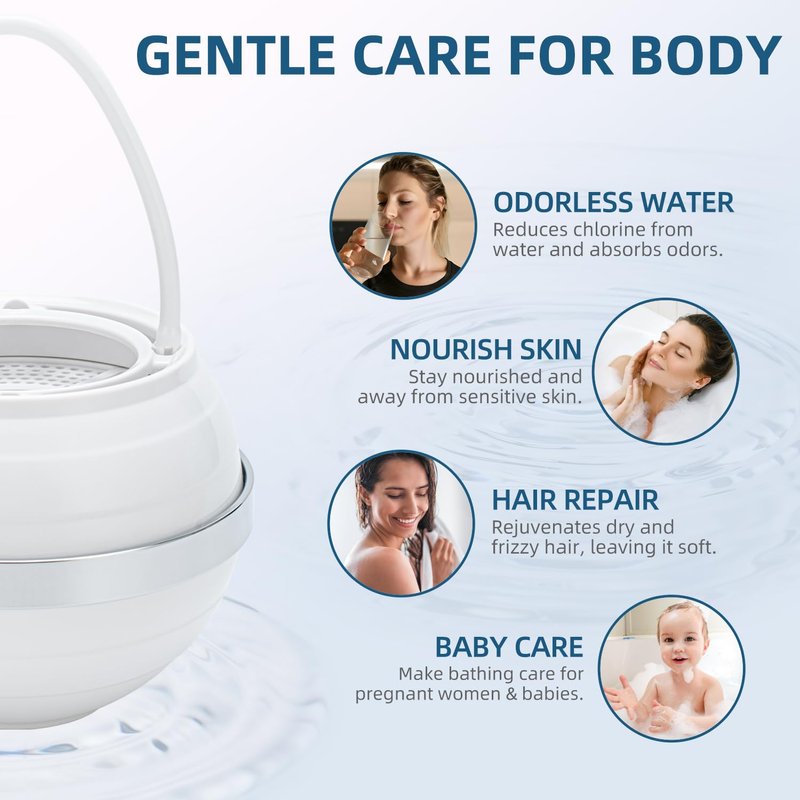- Body Care - Bath ball filter contains vitamin C, mineralized ball, magnetic energy ball. Infusing the water with oxygen, beneficial minerals, beneficial elements and vitamin C helps moisturize skin, smooth hair and nourish nails. Helps keep your body, skin, hair and nails great.