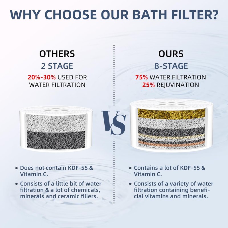 - Effective Bath Ball Filter - Bath ball filter contains KDF 55, activated carbon, calcium sulfite, zeolites, tourmaline. Effectively reduce chlorine, reduce heavy metals, reduce rust, reduce harmful substances, scale water alkali and absorb odors.