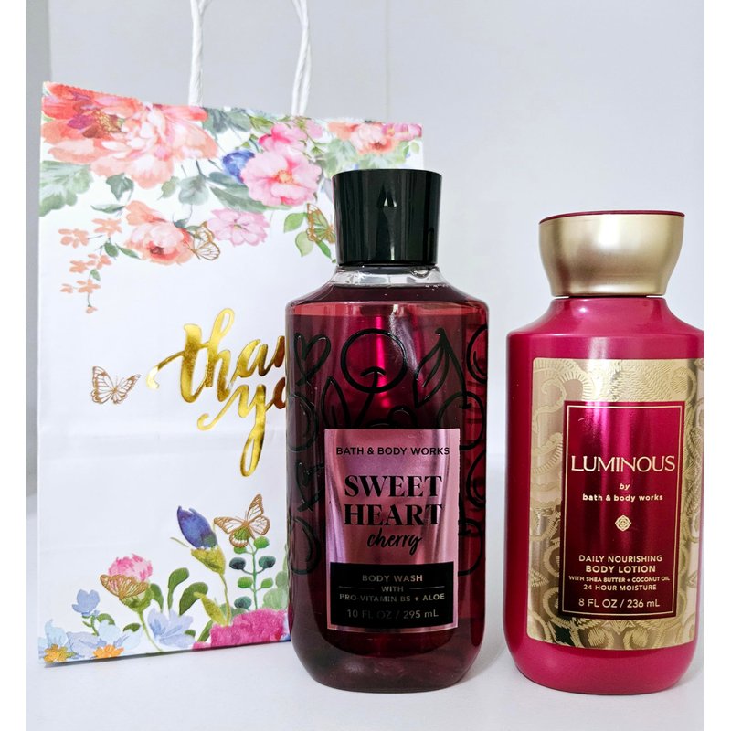 Bath & Body Sweet Heart Cherry Body Wash 10 fl oz, Luminous Daily Nourishing Body Lotion 8 fl oz