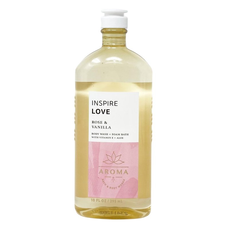 - Bath & Body Works Aroma Inspire Love ROSE + VANILLA Body Wash + Foam Bath Set with a Marbela Himalayan Salts Springs Bar Soap.