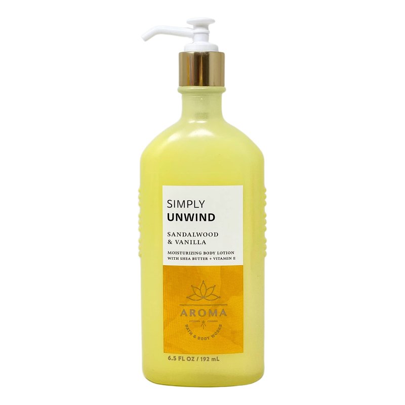 Bath & Body Works Aroma Simply Unwind SANDALWOOD & VANILLA 2 Pack Moisturizing Body Lotion Gift Set with a Natural Oats Bar Soap - Full Size