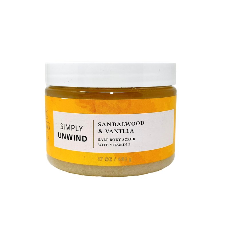 - Salt Body Scrub (17 oz / 482 g each) - What it does: buffs and exfoliates skin to leave you feeling soft and refreshed. Infused with the good stuff (natural essential oils, vitamin E, aloe and salt)