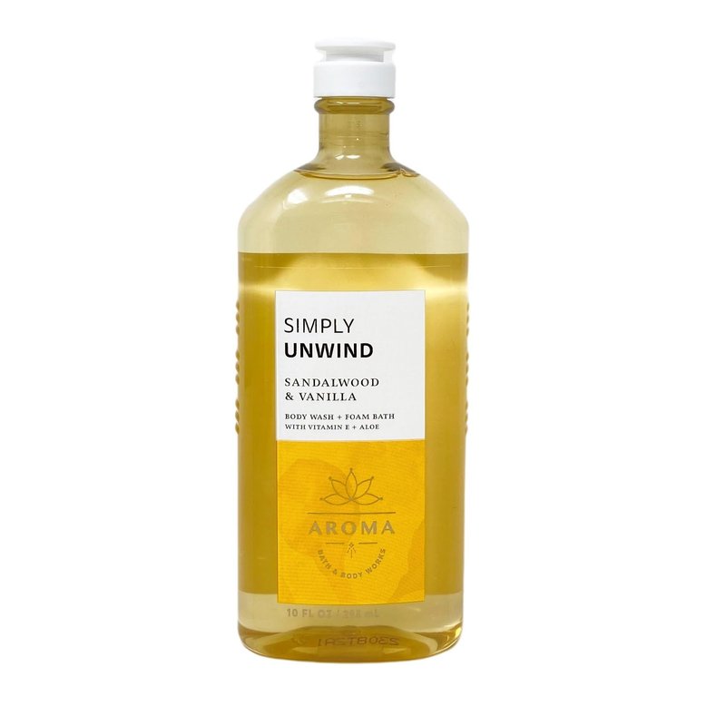 - Bath & Body Works Aroma Simply Unwind Sandalwood & Vanilla Gif Set with a 4 oz Marbela Natural Oats Bar Soap. (Soap May Vary).