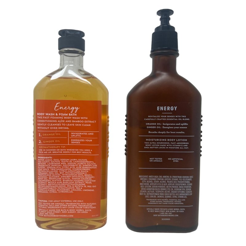 Bath & Body Works Aromatherapy Body Wash & Lotion Set - Energy Orange + Ginger