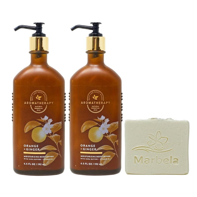 - Bath & Body Works Aromatherapy Orange + Ginger Body Lotion Gift Set Bundle with a Marbela Natural Oats Bar Soap.