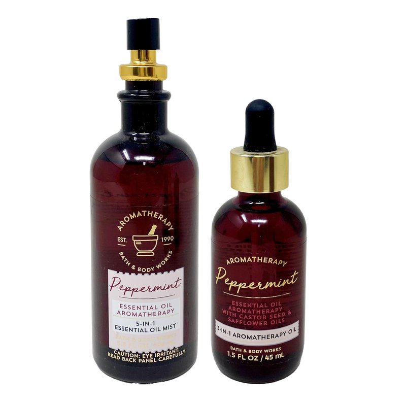 Bath & Body Works Aromatherapy Peppermint - Duo Gift Set- 5 in 1 Essential Oil Pillow Mist and 3 in 1 Aromatherapy Oil.